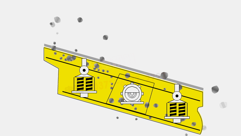 圓振動篩主要由篩箱、篩網(wǎng)、振動器、減振彈簧裝置、底架等組成。篩機側板采用鋼板制作而成,側板與橫梁、激振器底座采用高強度螺栓或環(huán)槽鉚釘連接,采用筒體式偏心軸激振器及偏塊調節(jié)振幅。振動器安裝在篩箱側板上,并由電動機通過三角皮帶帶動使激振器偏心塊產生高速旋轉,產生很大的離心慣性力,激發(fā)篩箱產生一定振幅的圓運動,篩上物料在傾斜的篩面上受到篩箱傳給的沖量而產生連續(xù)的拋擲運動,物料與篩面相遇的過程中使小于篩孔的顆粒透篩,從而實現(xiàn)分級。